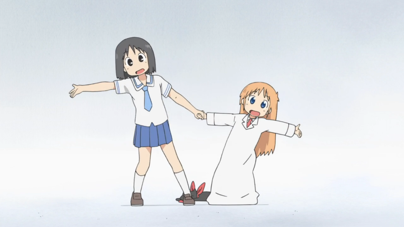 Tak hanya mereka keseharian sang robot shinonome nano bersama dengan pencipatanya yang masih belia dan juga cerita teman teman mereka mewarnai kisah mereka. Nichijou nano and hakase duration. The series is directed by tatsuya ishihara and aired in japan from april 3 2011 to september 26 2011. Nichijou primarily focuses on the daily antics of a trio of childhood friendshigh school girls mio naganohara yuuko aioi and mai minakamiwhose stories soon intertwine with the young genius hakase shinonome her robot caretaker nano and their talking cat sakamoto.